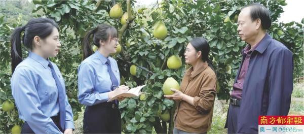 2025年11月12日,广东省梅州市梅县区检察院干警与区金柚协会工作人员一起走进柚园,向柚农普及法律知识,聆听柚农法治需求。