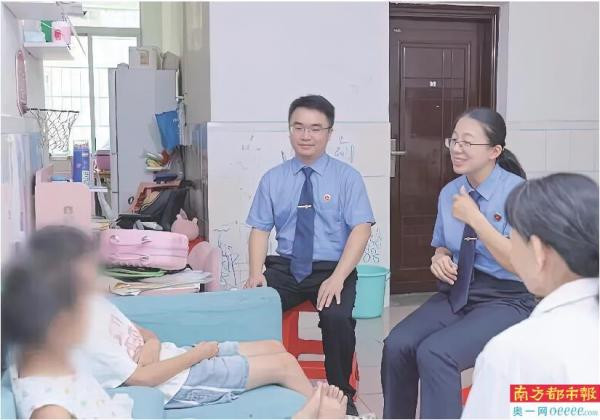 广东高州市人民检察院未检检察官根据“1+6+N”平台的线索进行上门家访工作。