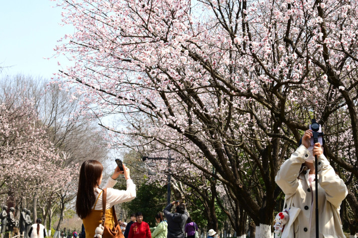 3月11日,杭州白塔公园,杏花盛开,吸引众多市民和游客打卡。里尔摄